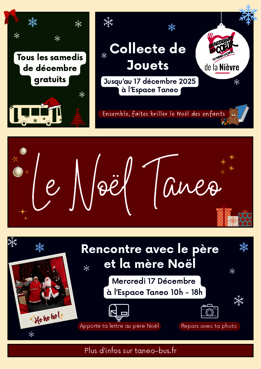 > Venez rencontrer le Père Noël et la Mère Noël le mercredi 17 décembre 2025 de 10h à 18h à l'Agence Taneo et repartez avec votre photo !